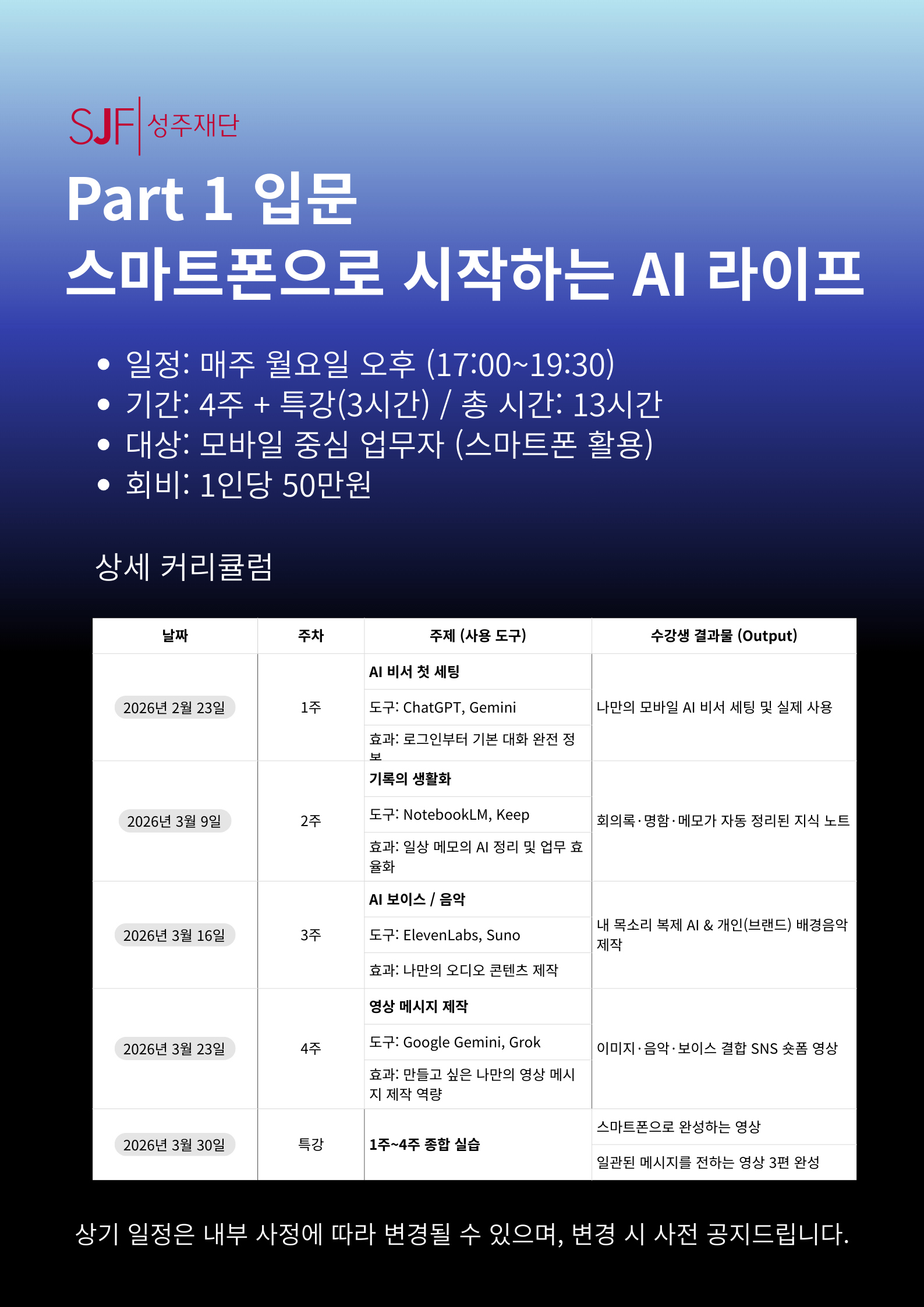 2026 SJF AI 아카데미 [Part 1 입문 - 스마트폰으로 시작하는 AI 라이프] 참가 안내