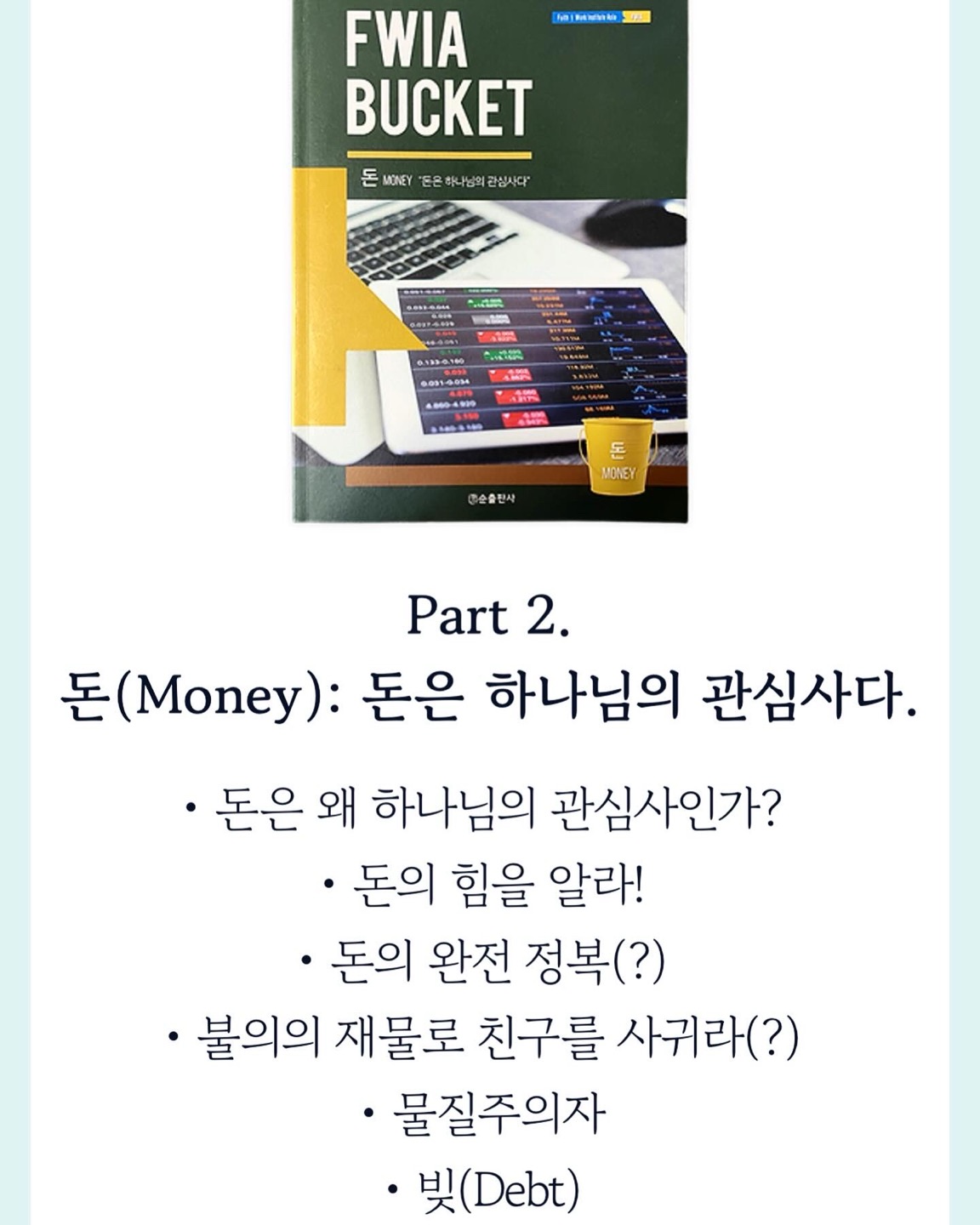 이번 프로그램은 전국신학대학협의회 회장이자, 횃불트리니티신학대학 김윤희 전총장께서 매주 화요일 저녁 7시부터 MCM 본사 지하 1층 카페 본에서 강의하실 예정이며, 6명의 FWIA Womans 멘토들과 함께 진행할 예정입니다.
