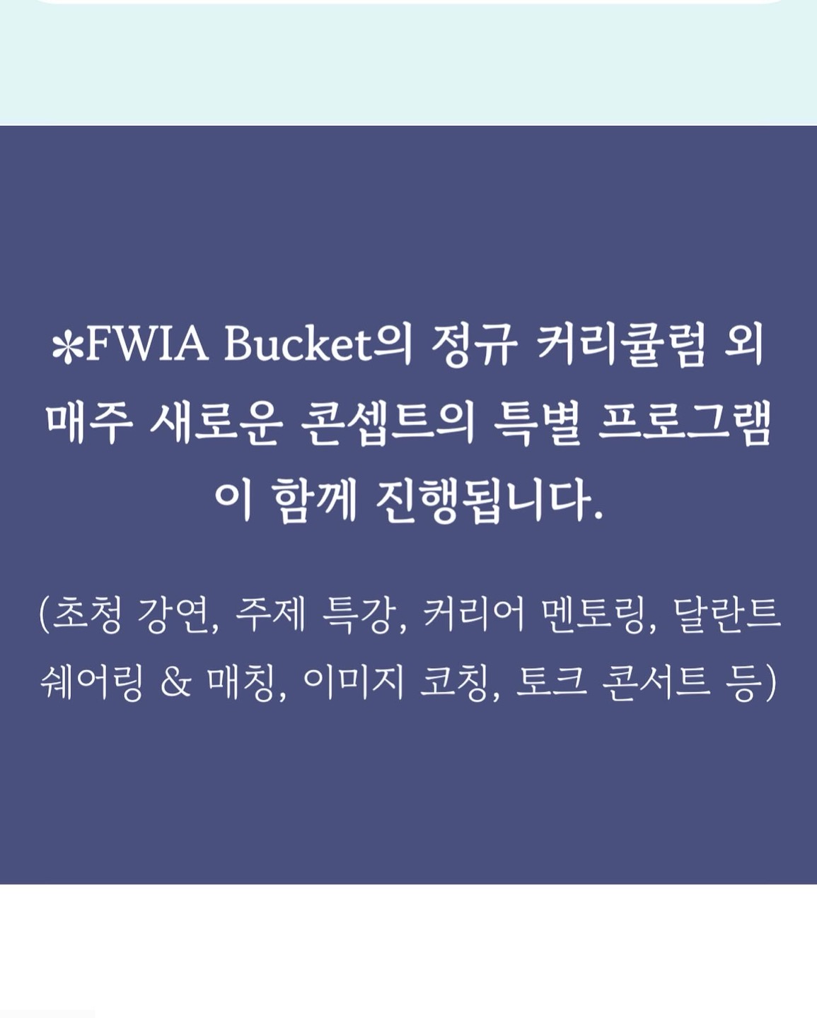 ‘FWIA Womans’는 성경적 원리로 일, 돈, 성공의 진정한 의미를 찾고 싶으신 분들을 대상으로 진행하며, 일터에서의 영성을 갖추고, 멘토링을 통해 커뮤니티를 형성하며, 성숙함과 유능함을 가진 커리어 우먼으로 함께 성장해 나가는 것이 목표입니다.