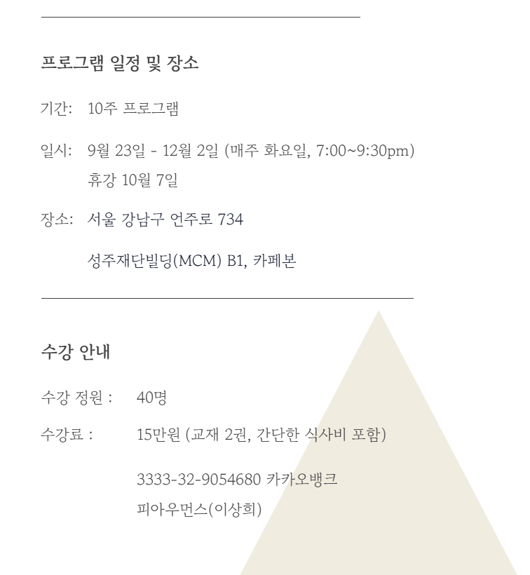 크리스천이 아니신 분들도 공감과 참여 가능한 강연이니, 관심 있으신 분들은 아래 사이트 통해 온라인 사전 신청 부탁드립니다.