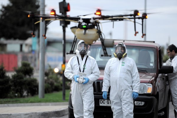 (Bottom) Spreading antiseptic drugs using drones on the streets